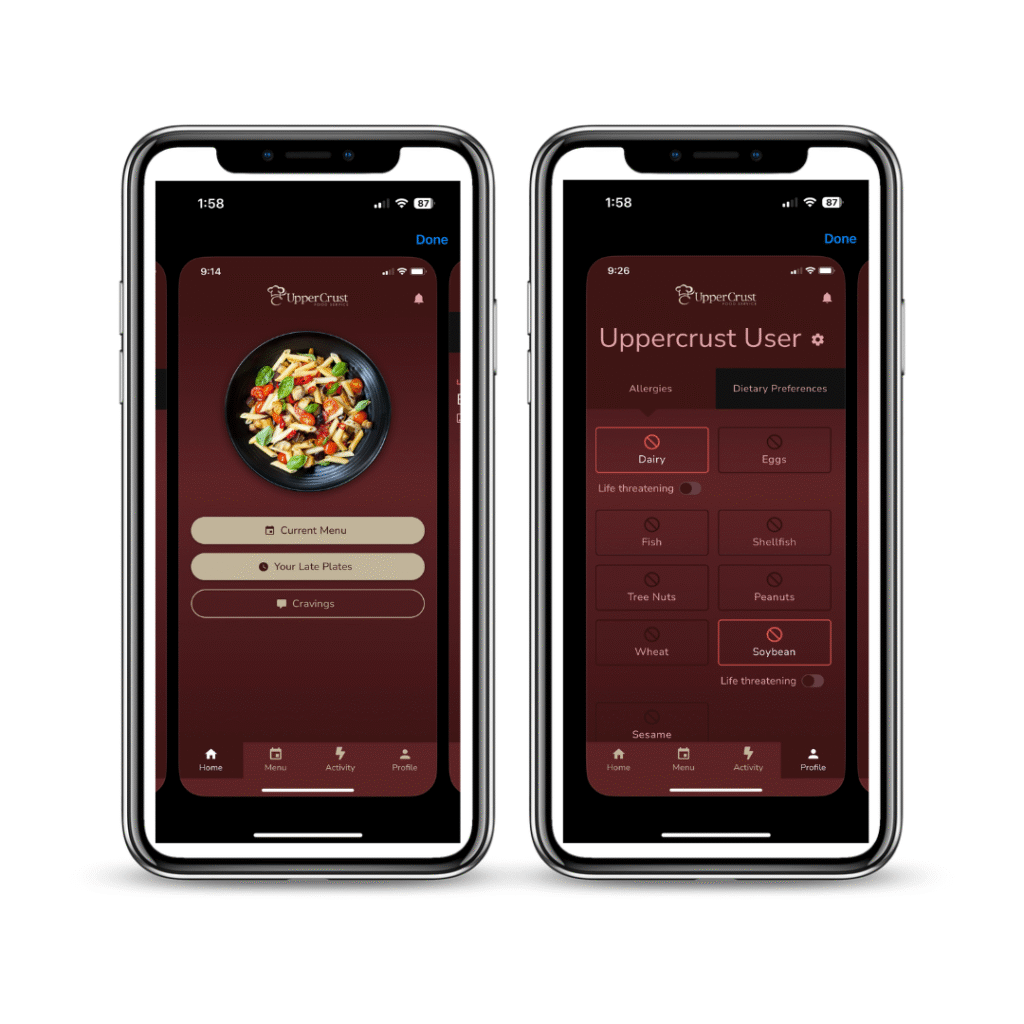 Delta created a custom-built web plus mobile application, providing Upper Crust with an administrative backend for organizing weeks, menus and meals. The streamlined front-end application was built for students to request late plates, view upcoming menus, rate meals and update their dietary restrictions and preferences in a clean, minimal interface.